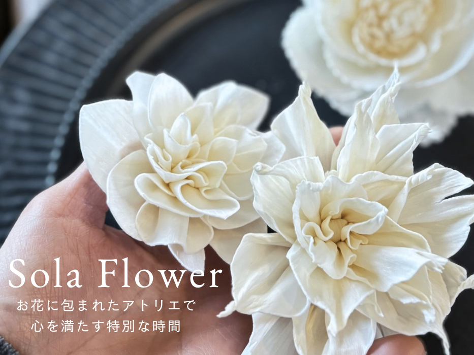 お花に囲まれたアトリエで、初心者でも安心して手作りソラフラワーのフレームアレンジが楽しめます。少人数制で丁寧にサポート。ナチュラルな風合いの作品はプレゼントにも最適です。