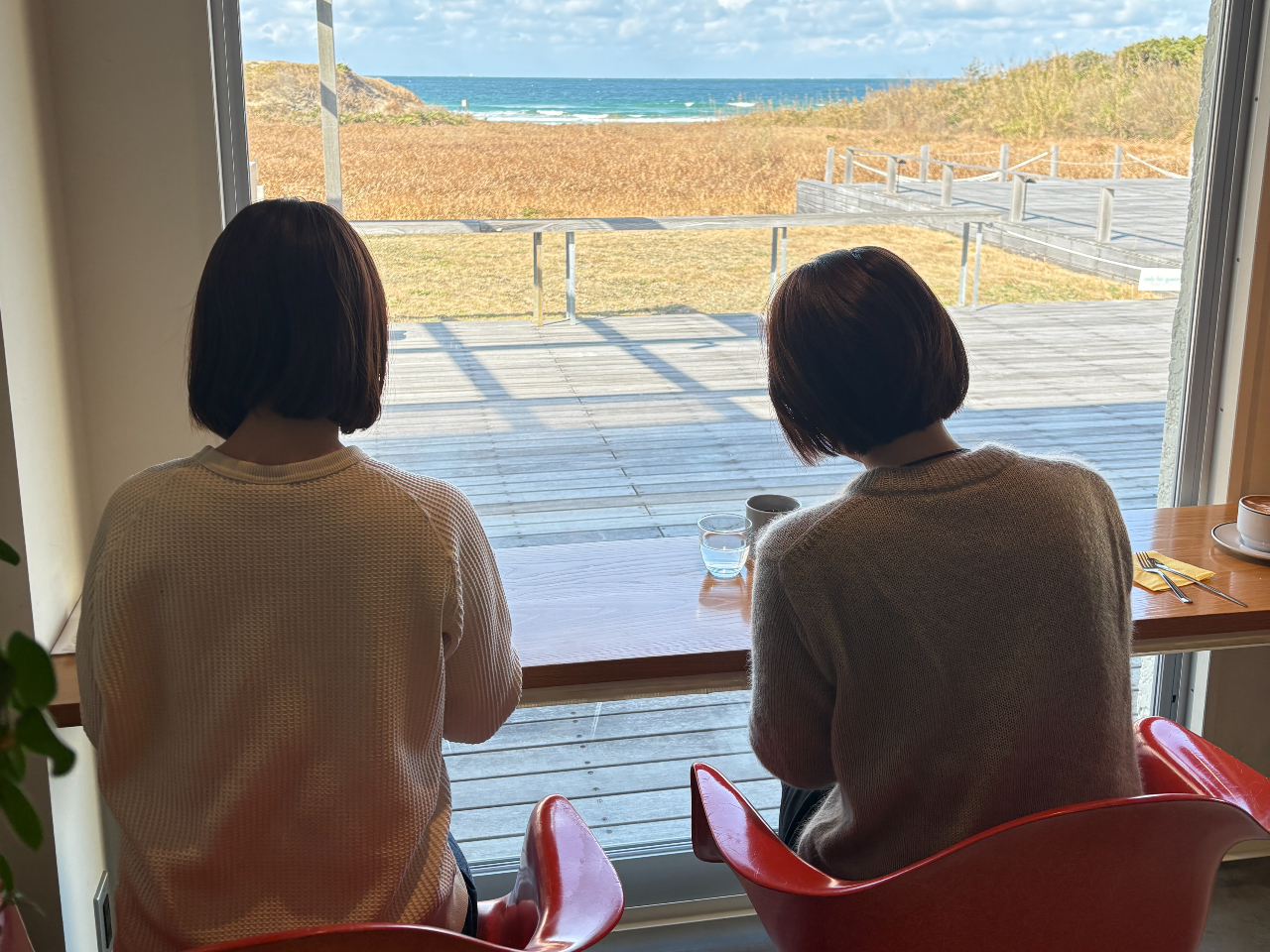 サイクリングのご褒美は綺麗な海を眺めながらのスイーツです。