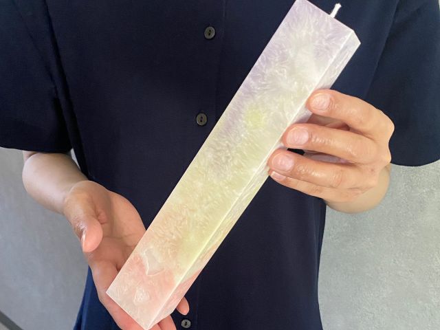 【C】シャイニー キラキラとした模様を生かしてグラデーションキャンドルを制作していきます。蝋を流すタイミングなど、集中していただく工程の多いキャンドルです。