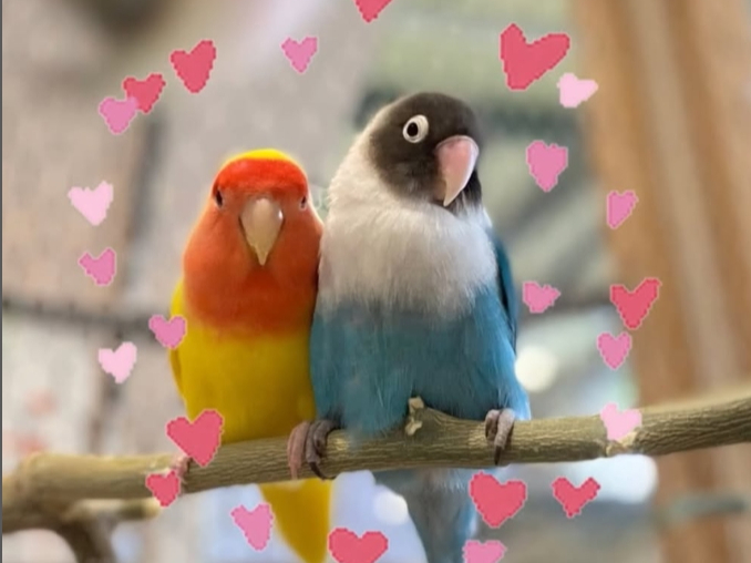 アヒルが自由に散歩しており、おやつをあげるとみんな集まってきてくれる!インコさんはお部屋に自由に入れて手や肩に乗って来てくれる!