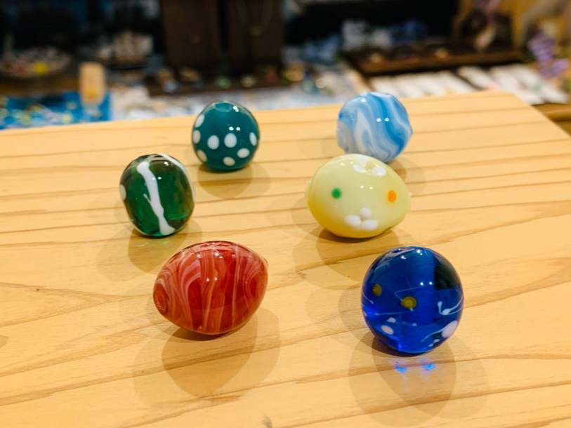 ガラスの中に美しい世界を閉じ込めた手作りのとんぼ玉で