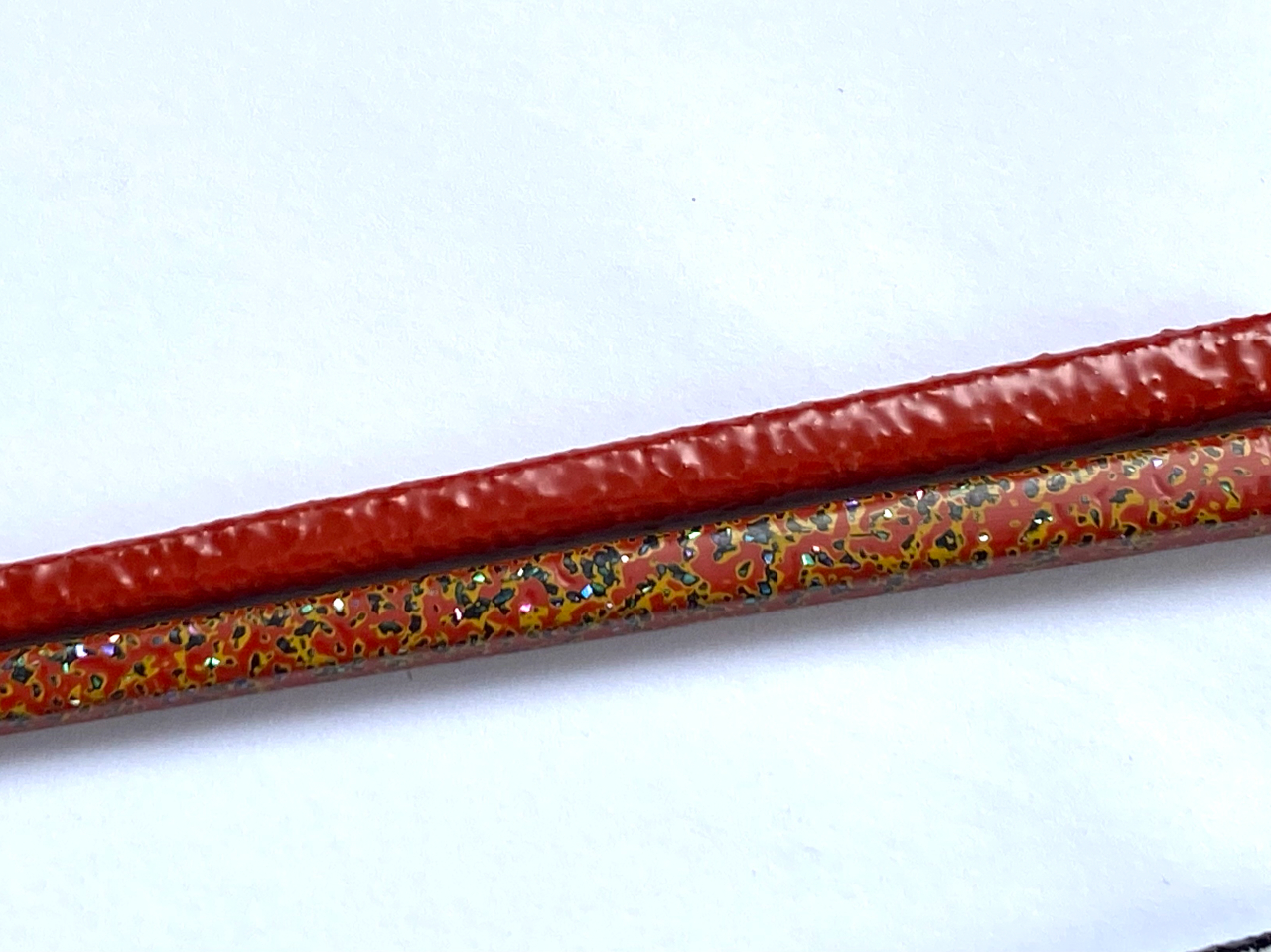 漆を塗り重ねられた箸はザラザラをした質感ですが、研ぎだす事で螺鈿が輝き、箸全体がツルツルになります。