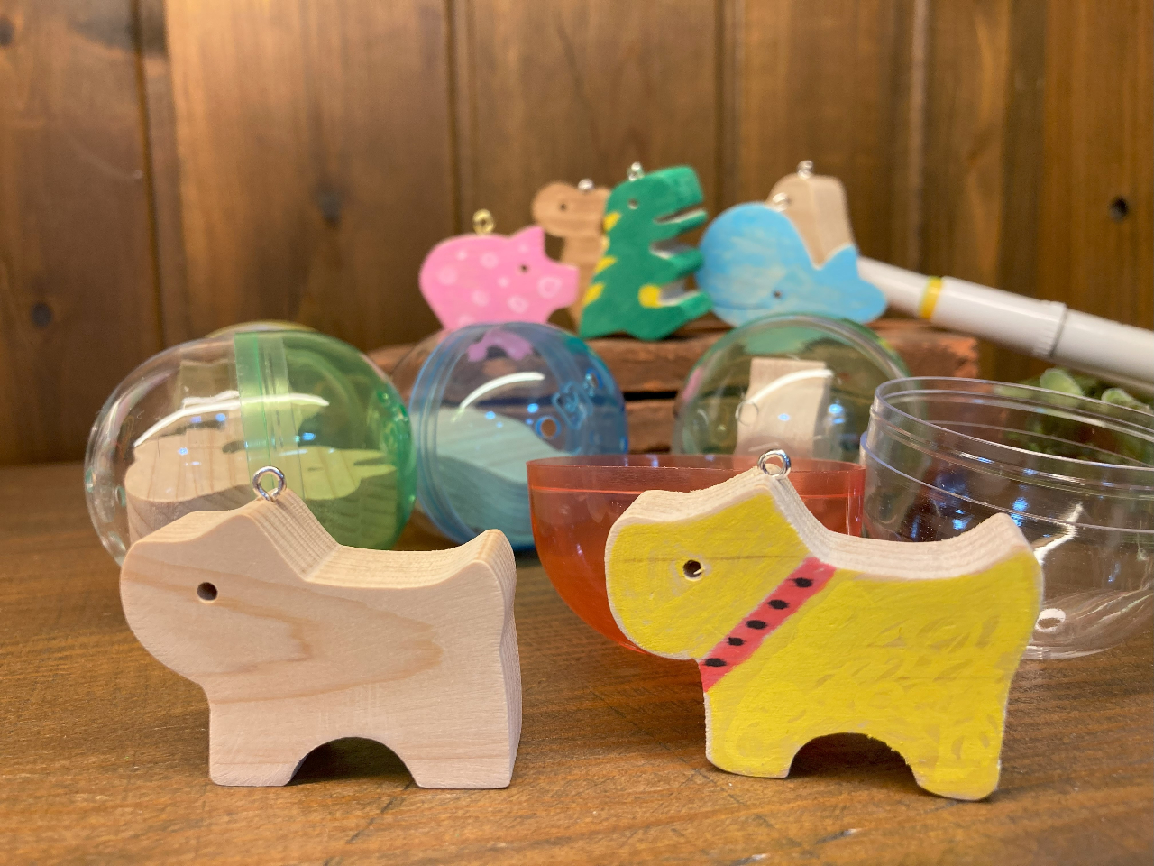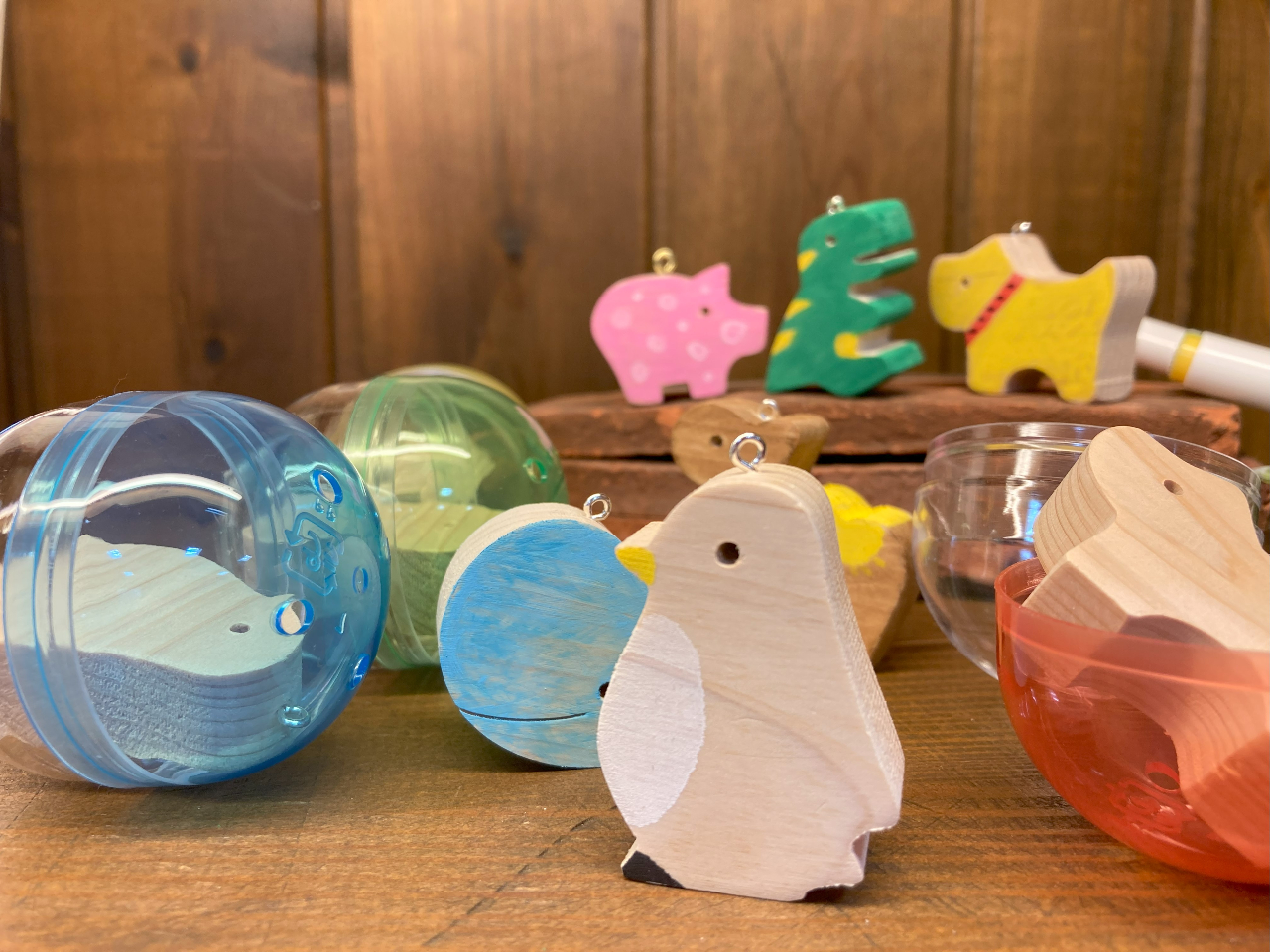 【里山エスクエラ】何が出るかな?木製ガチャポン動物絵付けストラップ作り体験♪ファミリーにおすすめ♪