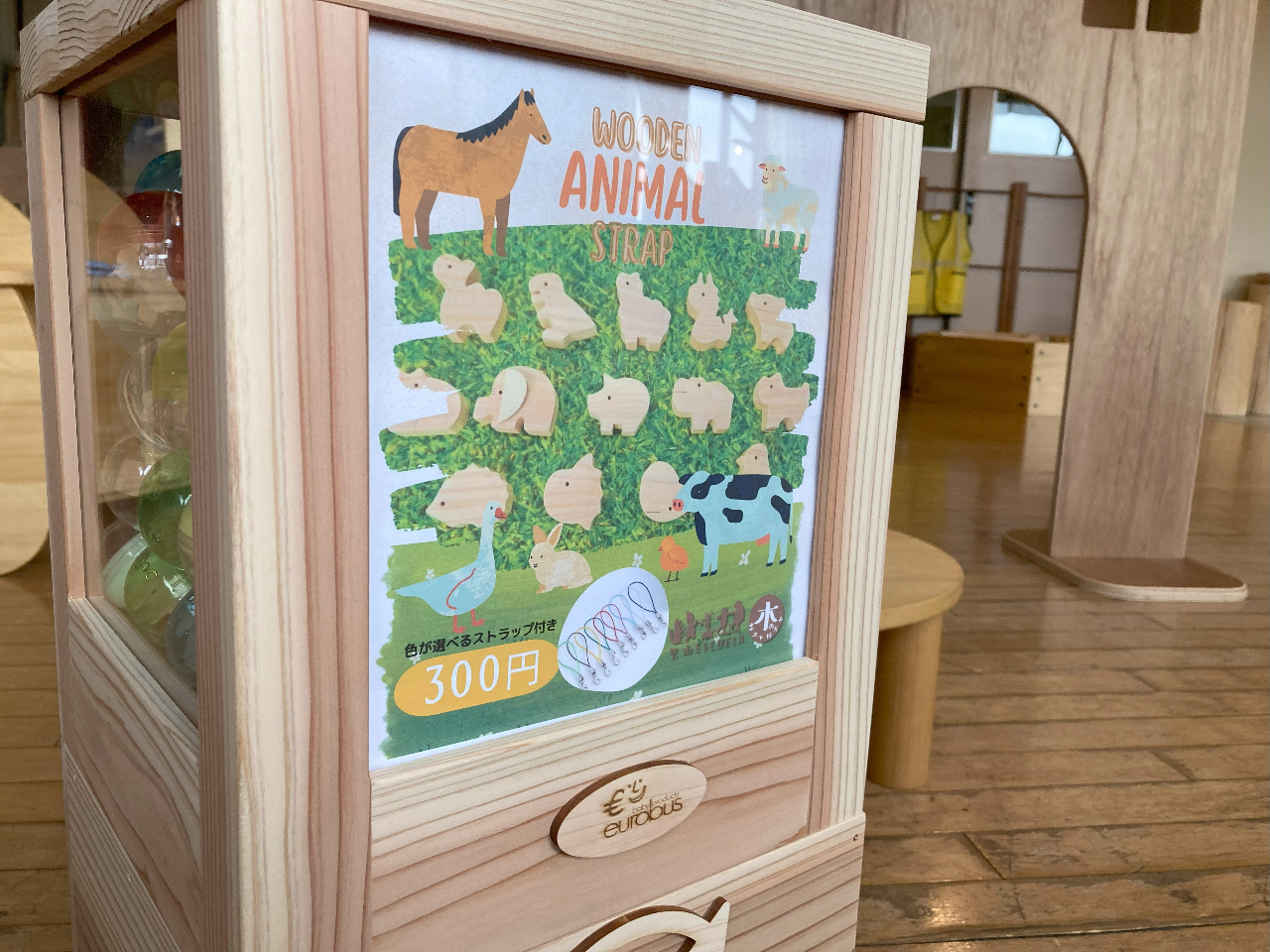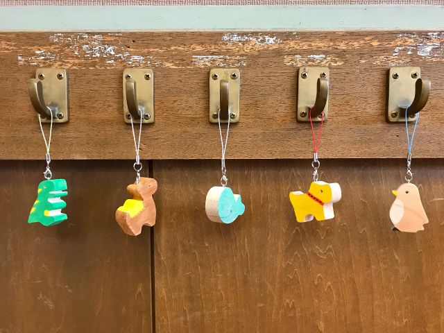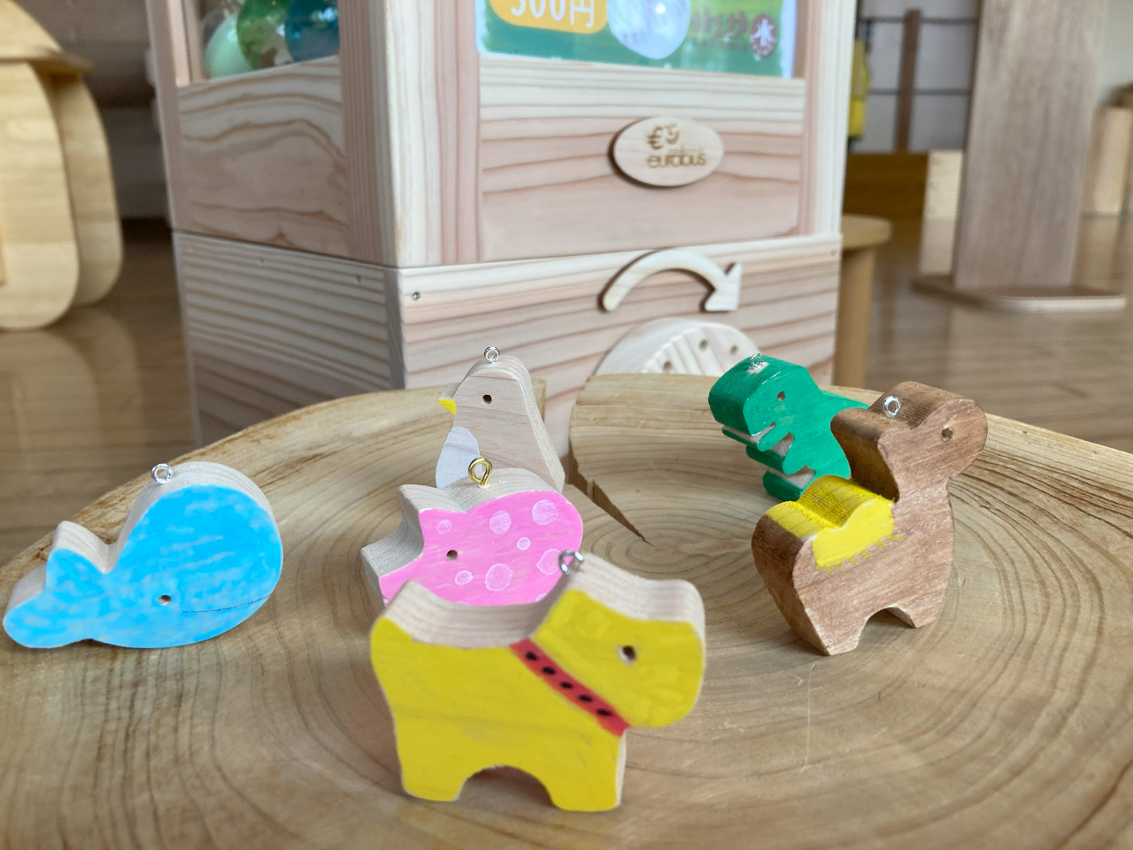 ◇体験内容:ショップ内にある木製のガチャガチャを回して出てきた、14種類の動物の中からお好きなものを選び、絵付けをしてオリジナルのストラップを作成します。
