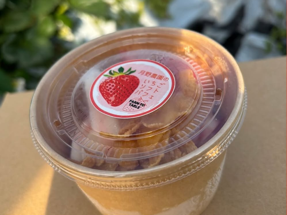 ・いちごのソースがかかった「いちごソフトパフェ」も販売中♪