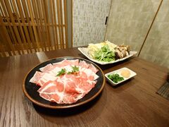 豚のロース、バラ肉、牛しゃぶが楽しめる豪華さ 程よい脂身と柚子胡椒ベースの出汁が食を加速させます