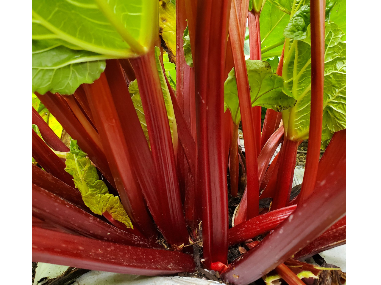 深紅色のルビールバーブはサンフレンド農園のみ収穫できます