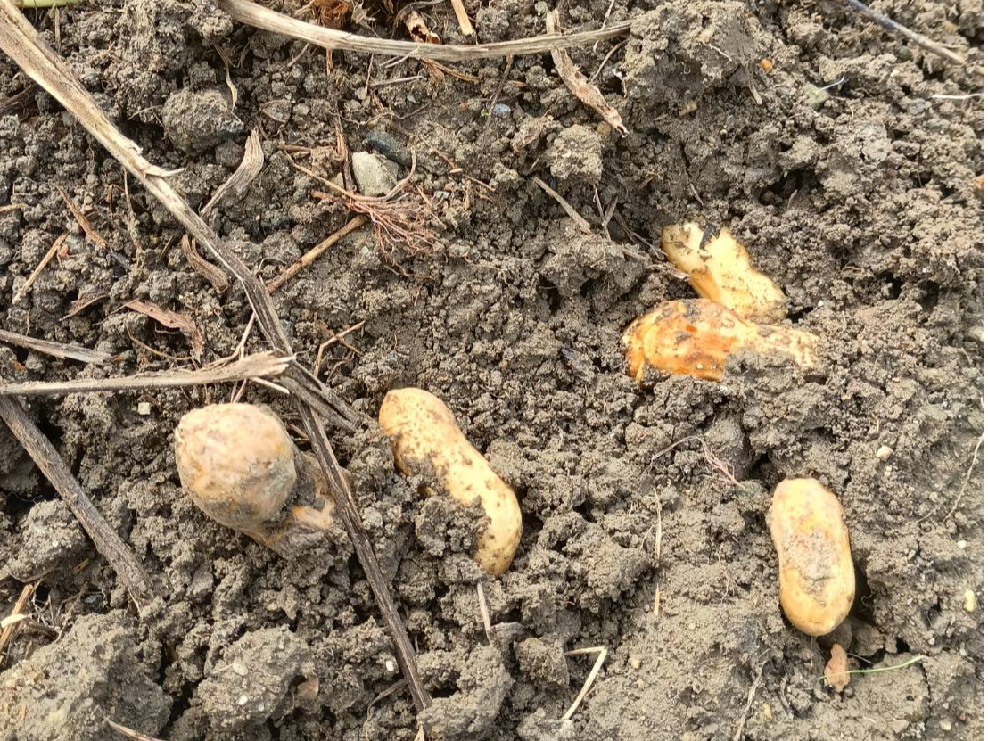 4.ピーナッツを引き抜いたあと、土の中に残っている豆を集めましょう。大きな豆が土の中に残っています。