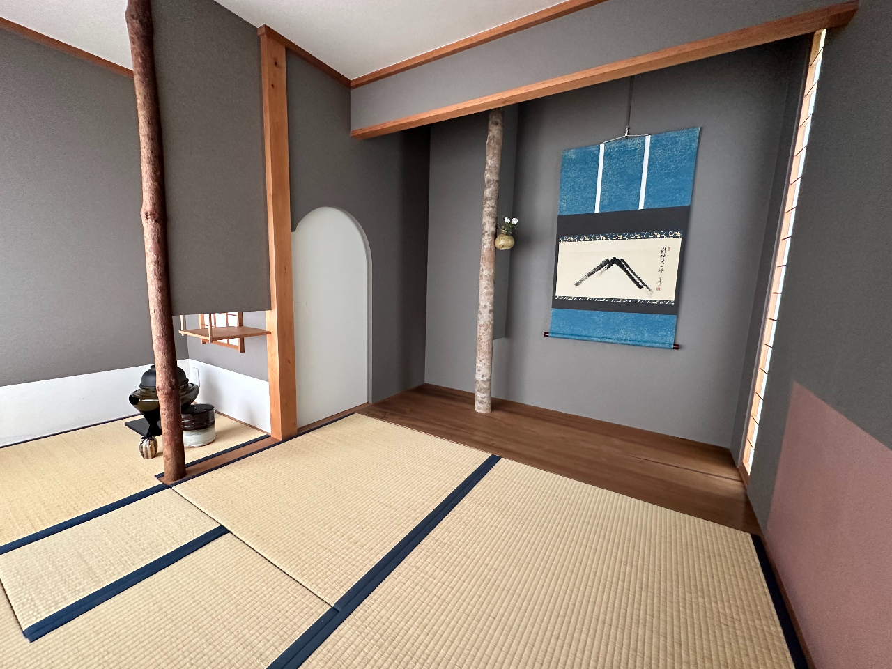 ・ご希望であれば2階の宙に浮かぶ茶室でも体験できますが、現代的な茶室での体験となります(要相談)