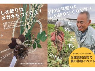 【兵庫・姫路・加西】11/9(日)「しめ飾り作り」と「芋掘り選手権」参加者大募集!!“農ある暮らし”を満喫♪ファミリーにオススメ♪