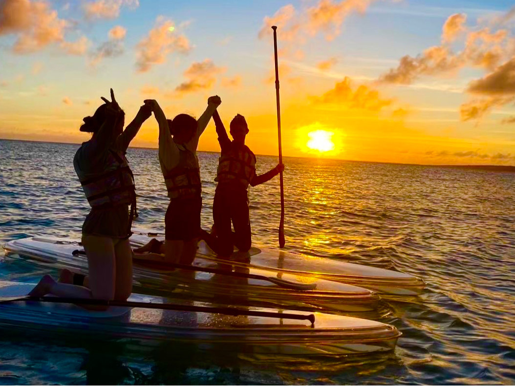 <宮古島> 【幻想的】★サンセットツアー★ クリアSUP【写真・動画データ無料】【レンタル無料】OPEN記念ステッカープレゼント ★女性・カップル・ファミリーにもオススメ★
