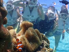 初シュノーケルで泳ぎも自信なかったけど、ライフジャケットもあるしガイドさんが色々教えてくれたので、思ってたより大丈夫でした!正直こんなに海の中が綺麗だと思ってなかったので、海の綺麗さに興奮したのと、ウミガメ、珊瑚、色んな魚を見ることができて感動でした!この景色を友達とか家族にも見せたいです(^^)また次来た時はよろしくお願いします!