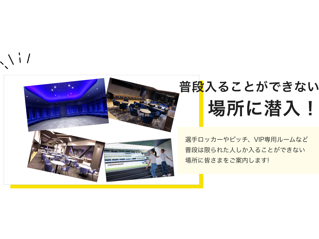 ・選手ロッカーやピッチ、VIP専用ルーム等普段は限られた人しか入ることができない場所に<専用ガイドが>皆さまをご案内します!