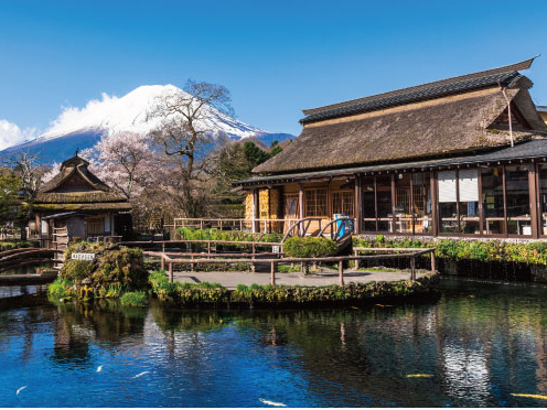 山梨県東南部の富士山麓に位置する忍野村。忍野八海から臨む富士山の光景や池と風車がある古き良き日本の風景は必見。天然記念物である「忍野八海」は、富士山の伏流水に水源を発する湧水池。その厳かで神秘的な湧水池に富士の恵みを感じるゆったりとしたひとときを楽しみ下さい。