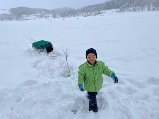 白銀の世界を背景に。自然に笑顔になります。