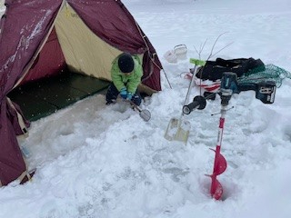 料金にガイドフィー・テント・ストーブ・釣具レンタル(釣り竿・仕掛け)・餌代が含まれており、参加者は防寒服・長靴・釣った魚を持ち帰る用の容器だけ用意すればOKです。