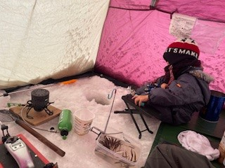 ●白銀の風景と暖かいテントで内でのワカサギ釣り