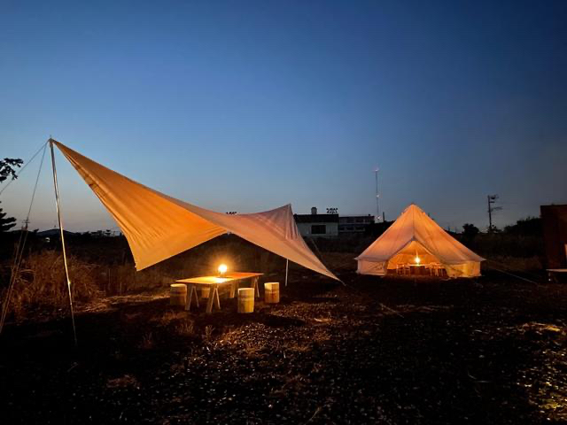絶景ロケーションで、本格的なタープキャンプが体験できます。
