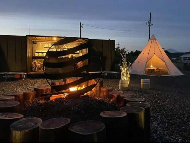 「Whole Earth Communications/WEC」は静岡市の駿河湾沿いに位置し、目の前に広かる海を眺めなからBBQが楽しめます。 海に写るサンシャインや夕暮れのサンセットタイムはビーチキャンフならては。WECではNORDISKのテントとターフを使ったキャンフが楽しめる他、 カフェ&ショッフも併設されており、ゆっくりとした時間を過こしていたたけます。 焚火セットをレンタルすれば海辺て夕日を眺めなから火のゆらめきを感じる、そんな贅沢な体験か出来ます。 そして、一日の疲れを癒すには温泉が一番。WECがある敷地からはサウナの聖地まて5分です。