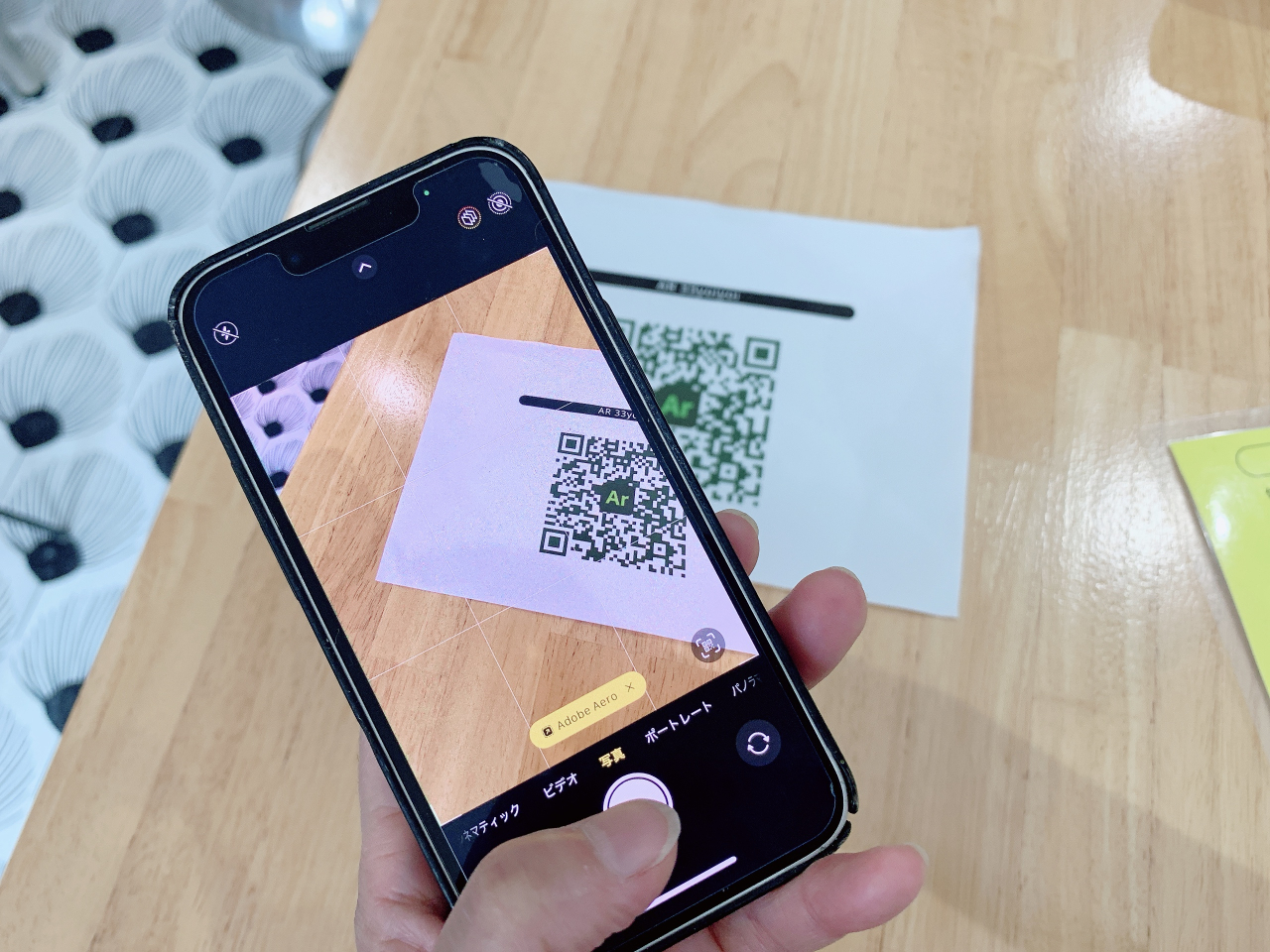ご自身のスマホをかざして体験していただきます。