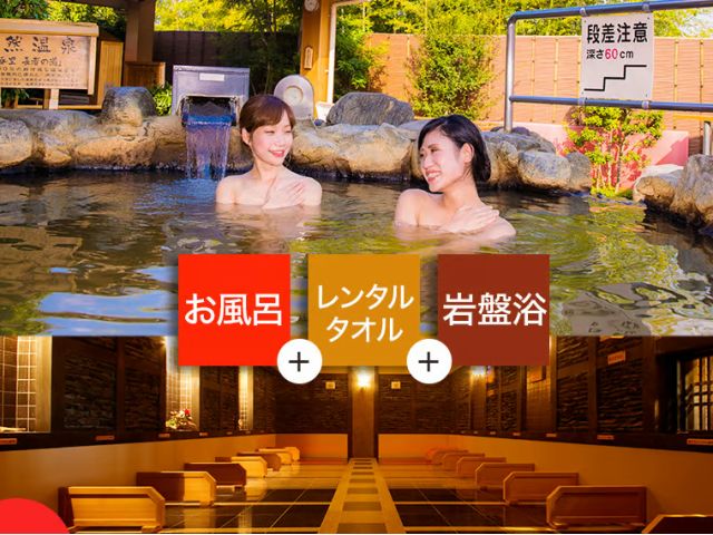 ・入浴料、岩盤浴、レンタルタオルセットが付いたお得なセットぷらん♪