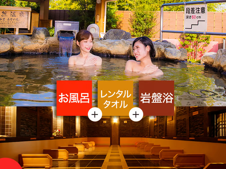 ・入浴料、岩盤浴、レンタルタオルセットが付いたお得なセットぷらん♪