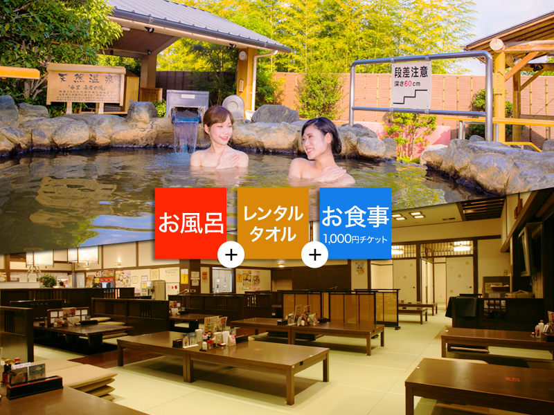 ・入浴料、レンタルタオルセットとお食事チケットが付いたお得なセットプラン♪