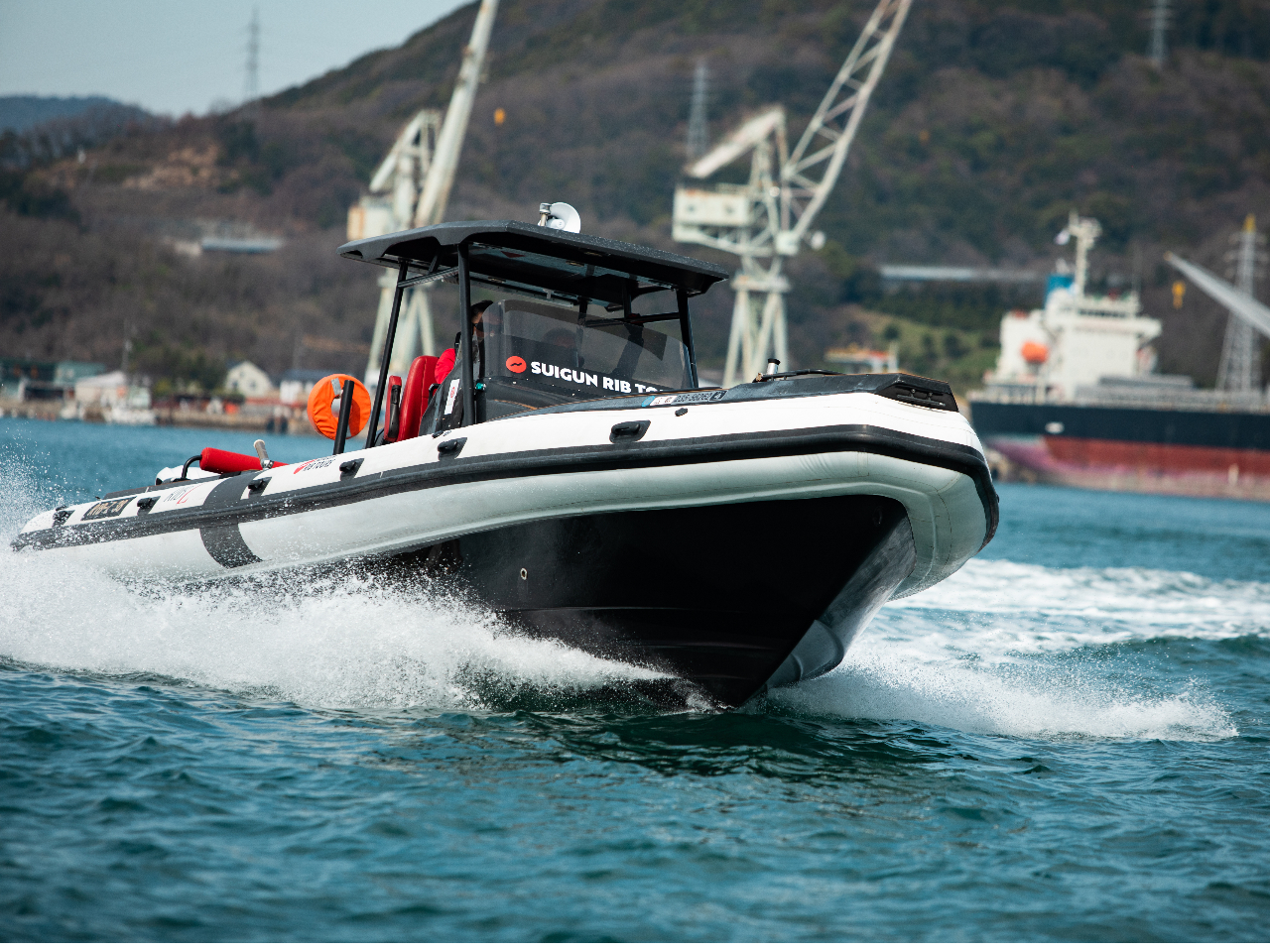 救難艇にも利用される安全性、走破性、安定性に定評のある高速艇。船酔いしにくいので安心してご乗船ください。乗船には必ず救命胴衣を着衣いただきます。