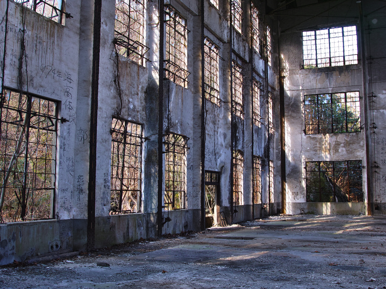 発電所跡 戦争遺構として存在感のある施設。ノスタルジーと歴史も感じてみてください。