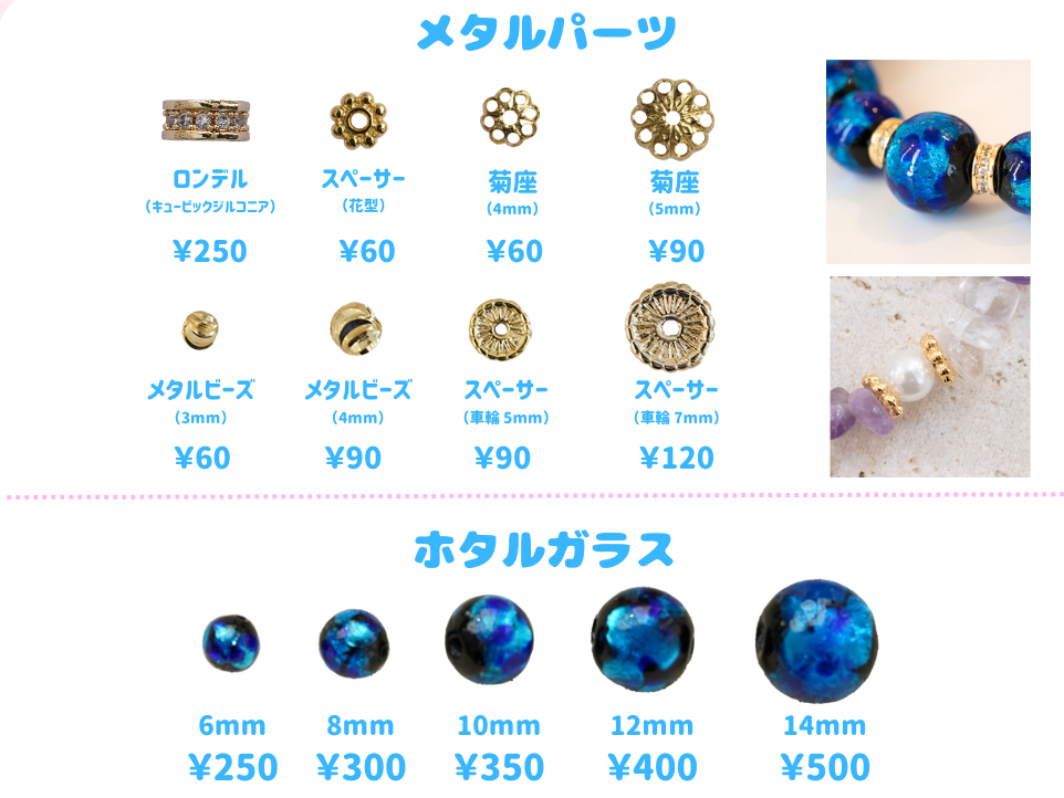 ※チャーム類やホタルガラスなど、オプションパーツは別料金となります。