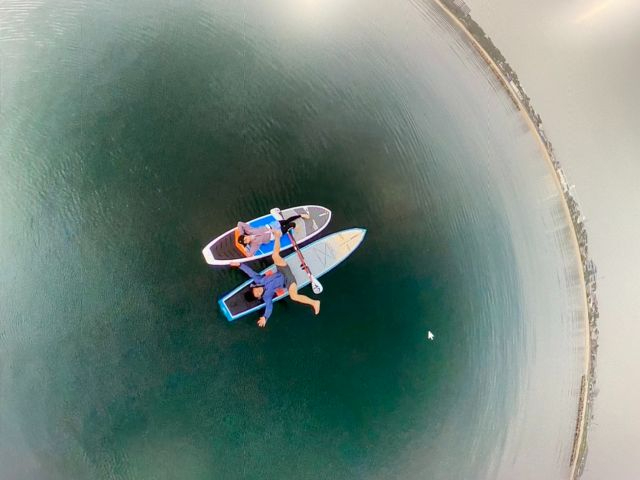 体験場所は「日本の夕陽百選」にも選ばれた絶景スポット。静かで穏やかな海なので、初心者やお子さま連れでも安心して楽しめます。ボードが大きい分、安定感も抜群!みんなでワイワイ漕いだり、上で座ってのんびりしたりと自由な過ごし方ができます。