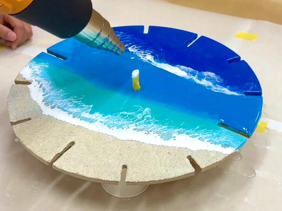 特殊な道具で高温の風を送って白波を作るので、初めての方でも簡単に本格的な海アートが楽しめます。