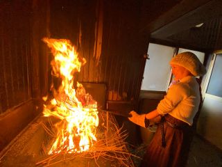 藁の火力で豪快に焼いていただきます