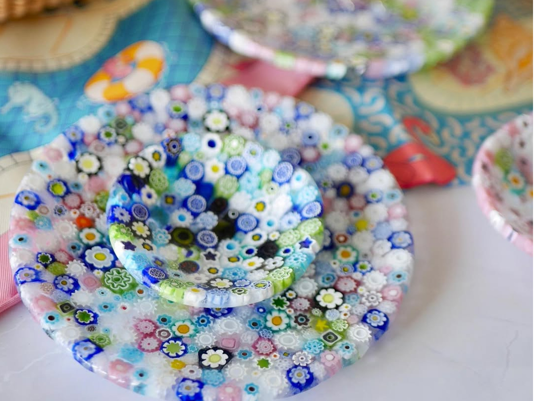 13pのプレートを使用し、ミルフィオリのベネチアンガラスを作る体験になります!