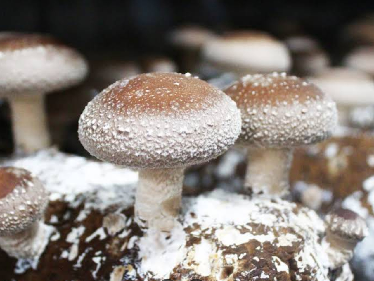 小さなかわいいしいたけ ~ 大きな肉厚しいたけが、菌床からぽこぽこ ∞ 心も和みます。