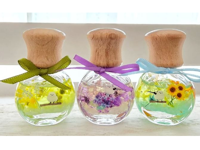 【販売作品】イベント会場では「すずらん」「ひまわり」「あじさい」Ver.のミニディフューザーを販売いたします♪ラベンダーの香りで癒し効果抜群!