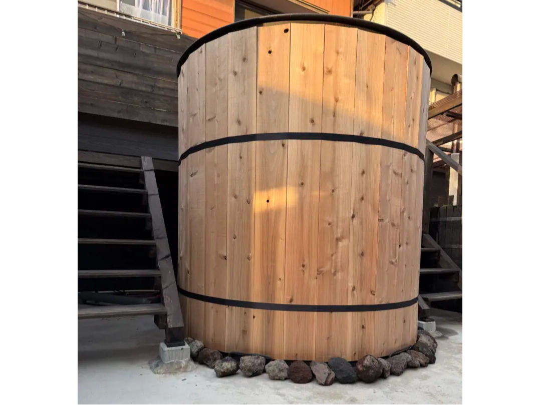 ・九州の酒蔵から調達した、直径2M、高さ2Mの特大酒樽を水風呂