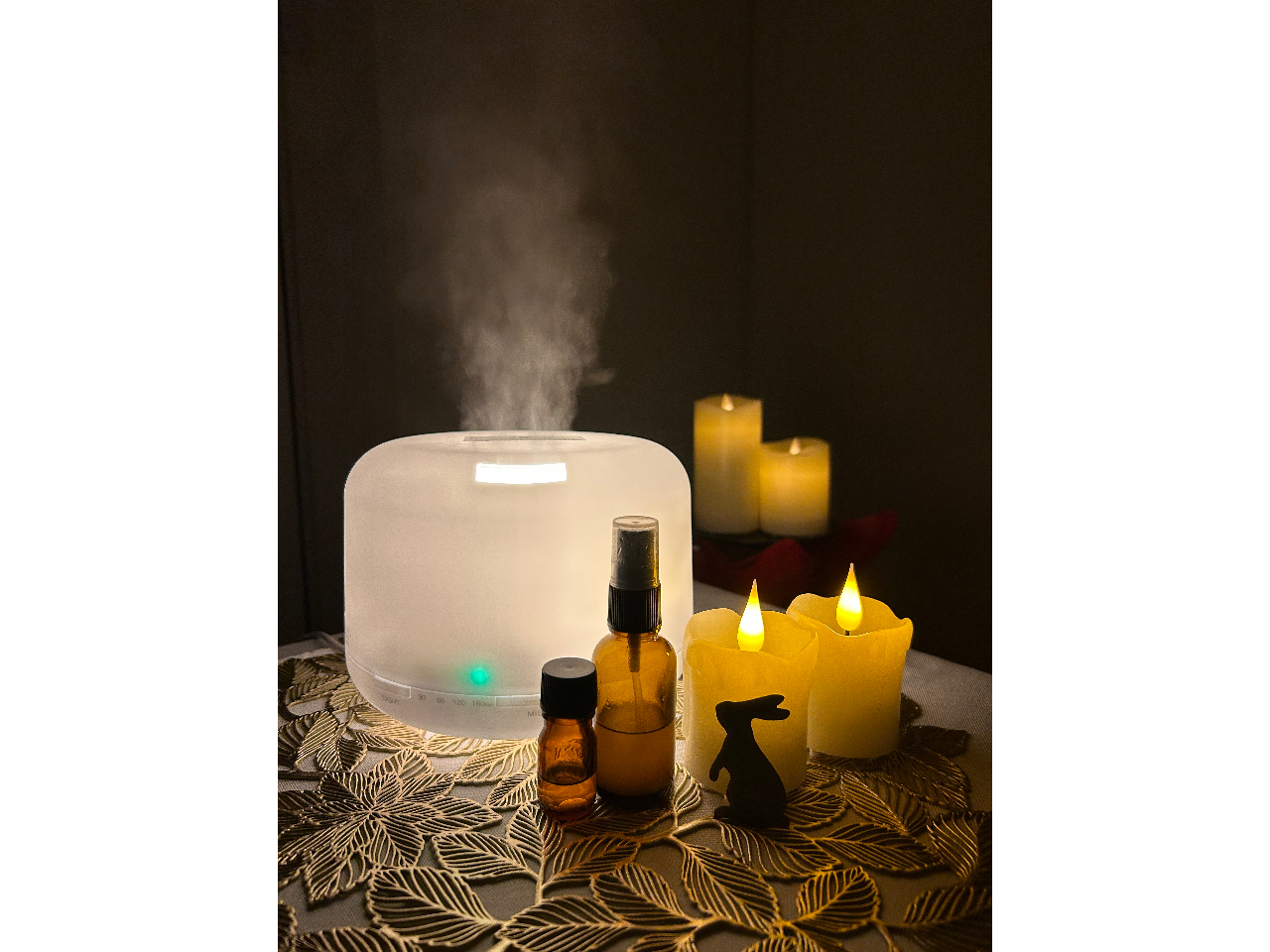 アロマキャンドル、アロマディフューザー、アロマスプレーなどの香りを使い癒しの空間を演出しています。