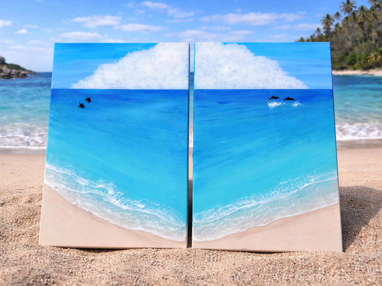 空と海を自由に描いて、世界にひとつだけのアートパネルを作りましょう!
