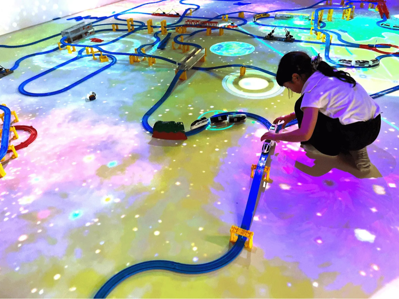 人の動きに合わせて、障害物をよけたり、まるでジオラマのように足元に広がる、夢の世界!