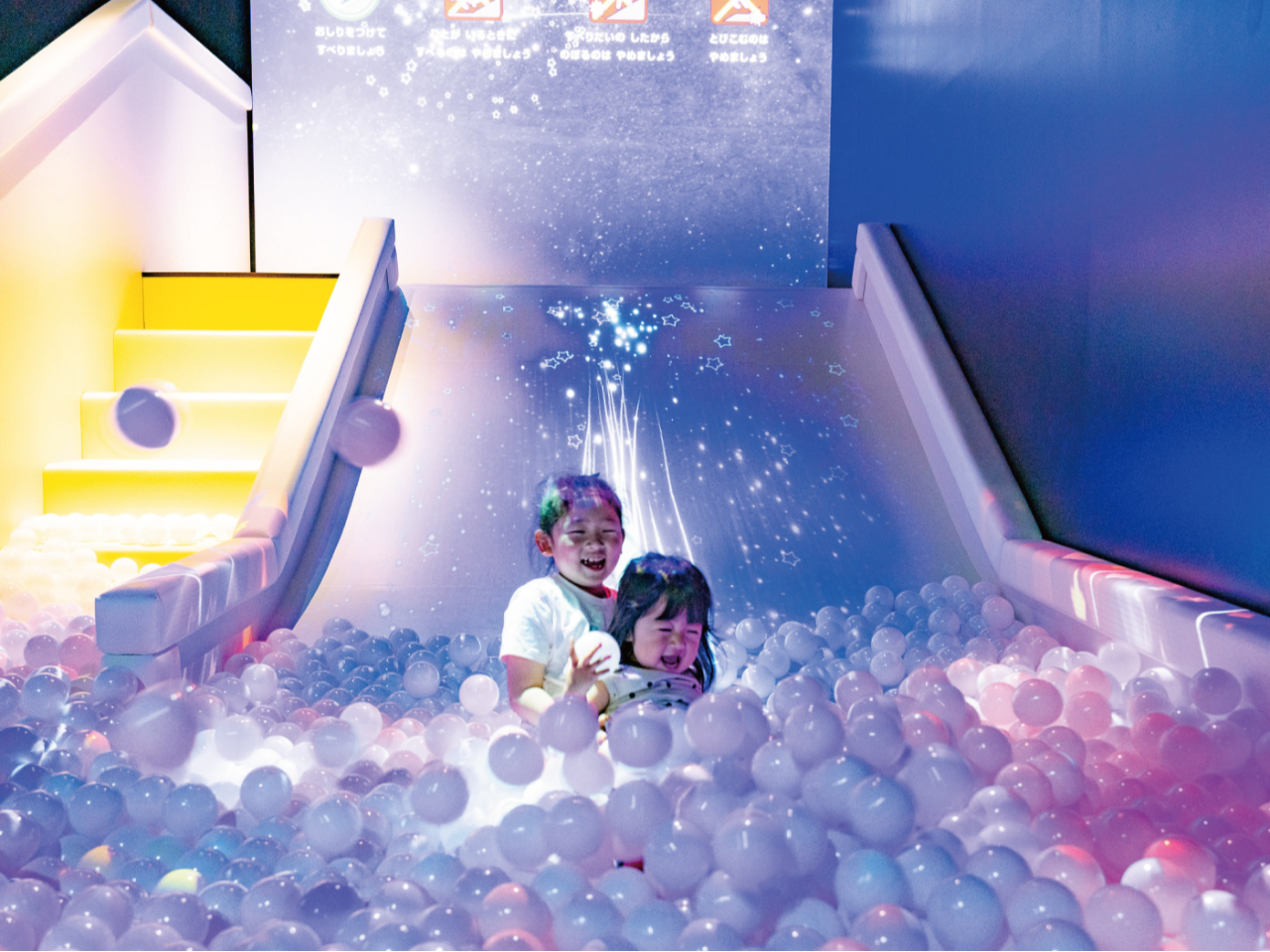 AR(拡張現実)を駆使した砂遊びや光と音がはじけるボールプールなどの体験型アトラクションが多数あります。頭を使う遊びから身体を動かすものまで、子どもたちの創造力で遊びは無限に広がります。