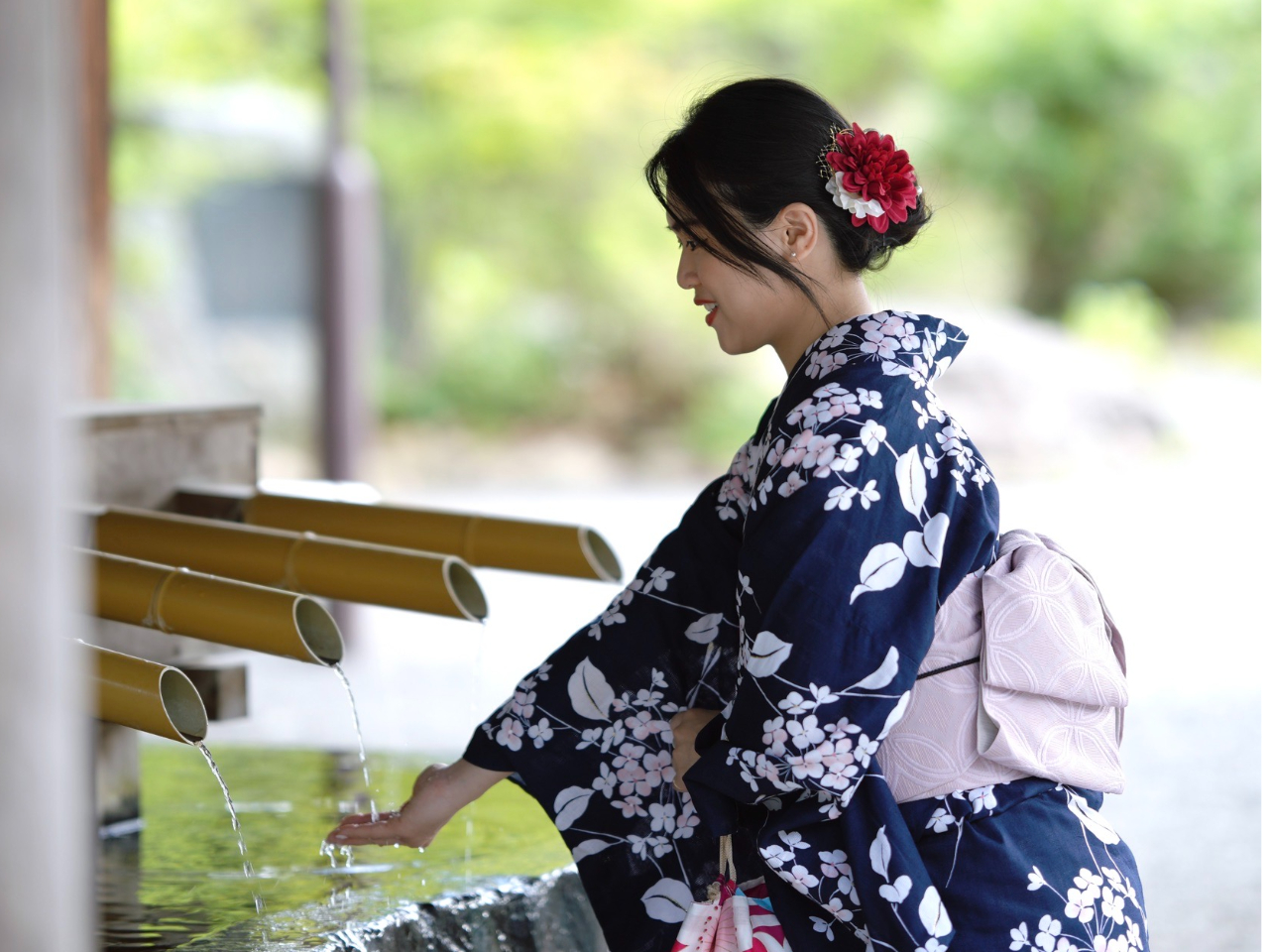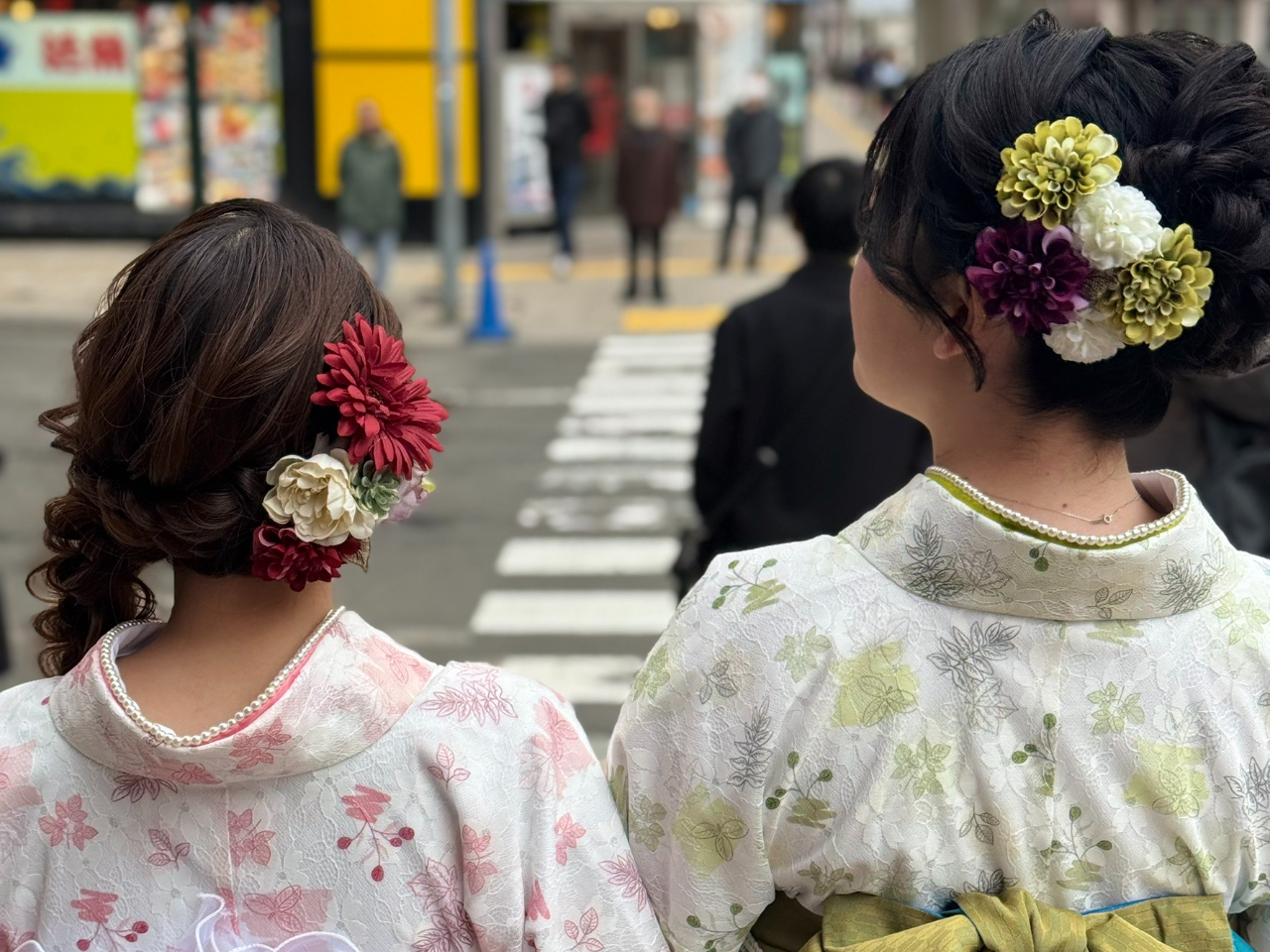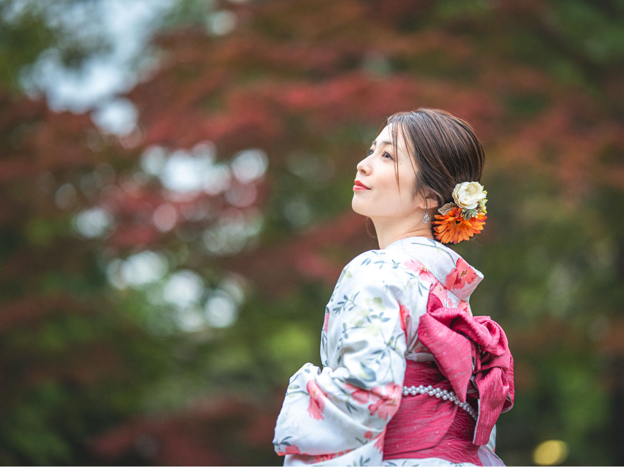 お仕度時間は、ご来店〜お出掛けまでに1時間半前後、その後カメラマンとお出掛けいただき、1時間撮影、その後自由時間となります。