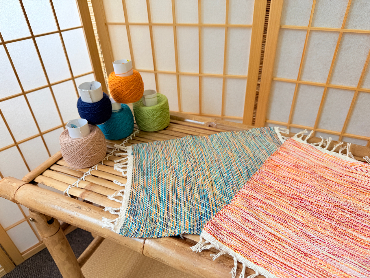 24色の糸の中から好きな糸を5本選びランチョンマットorテーブルランナーを手織りします。世界で1枚のオリジナルの綿織物。★対象年齢10歳以上★