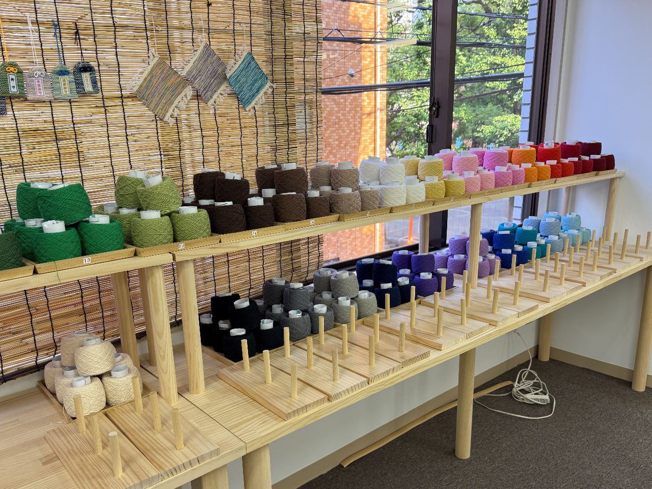 24色の糸からお好きな糸を選びお守り袋にする生地を織りお守り袋を作ります。