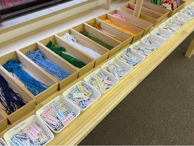 おりなみオリジナル願い事ワッペンと願い紐は好きなものを選びます。