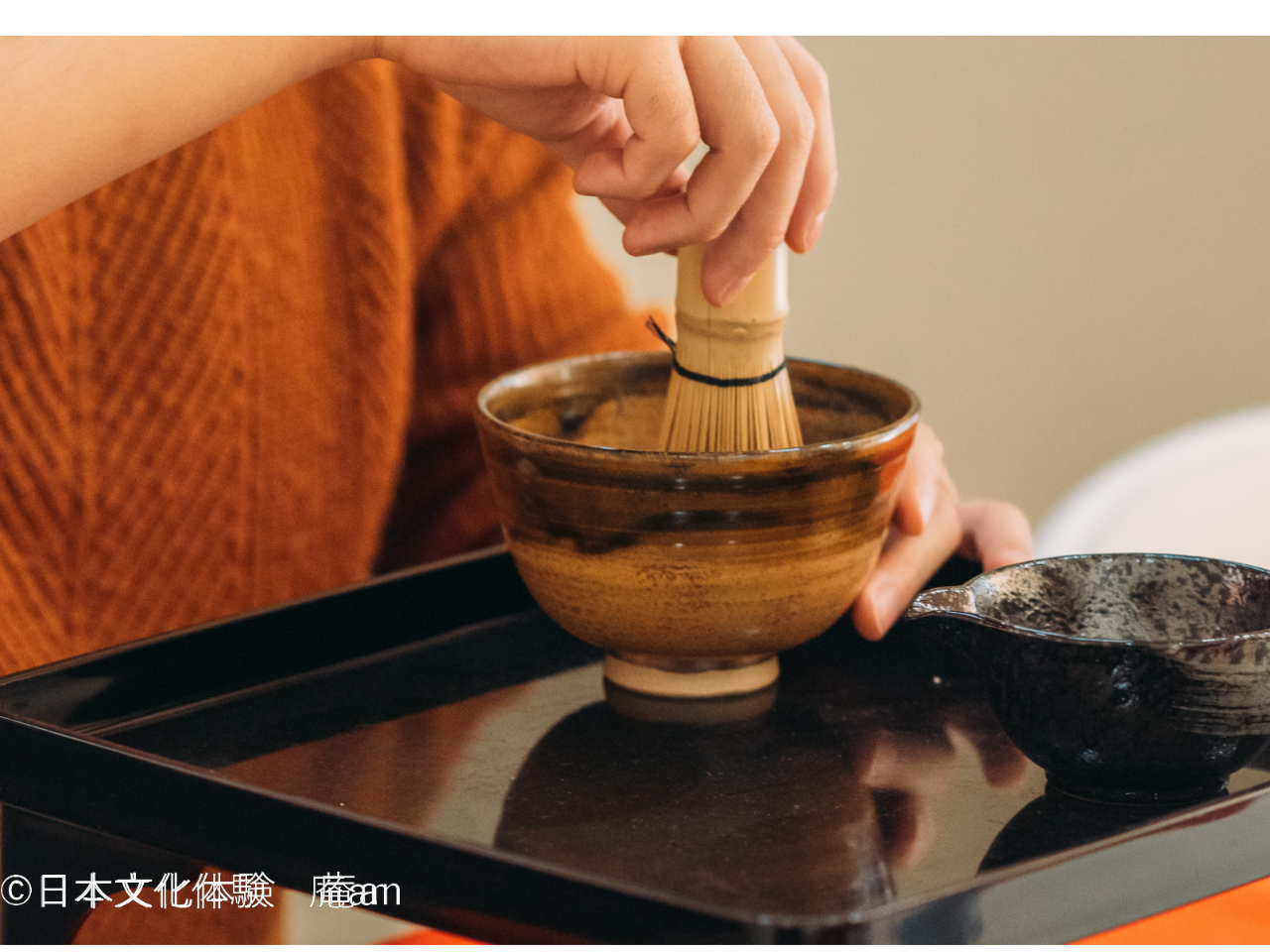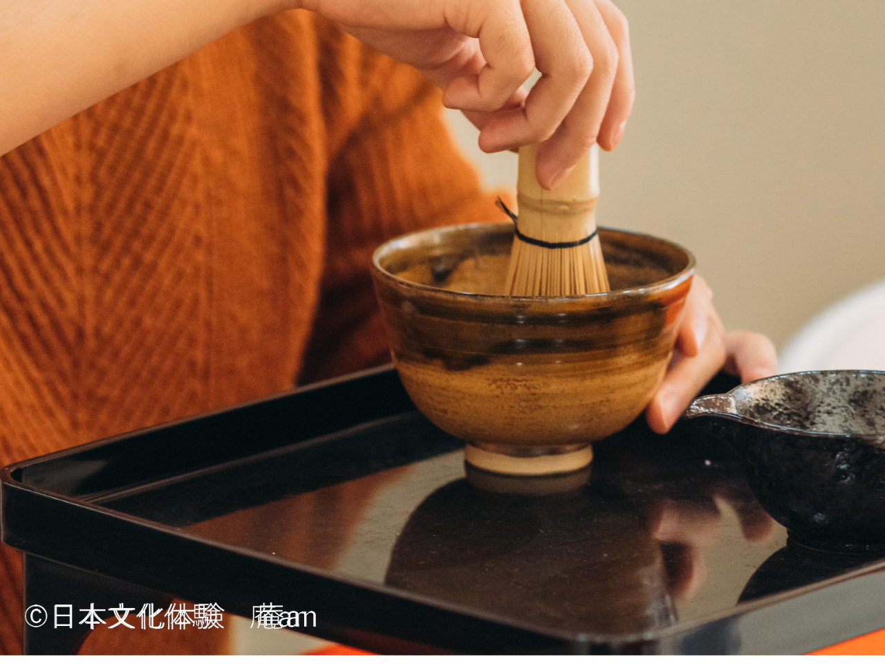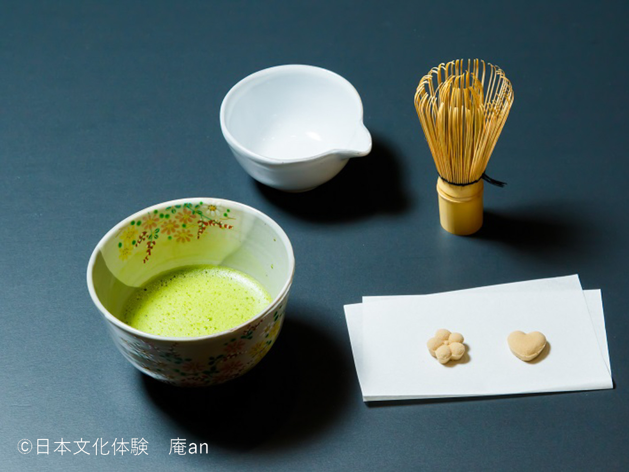 〈2〉自分でお抹茶を点てて、作り立てのお菓子と共に召し上がっていただきます。日本文化