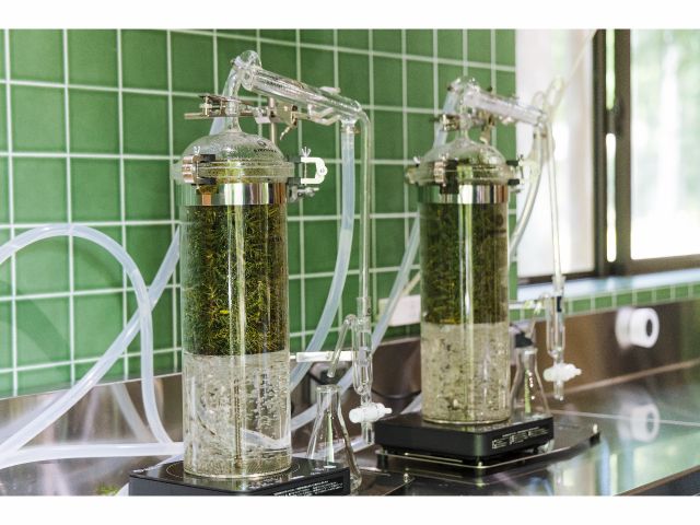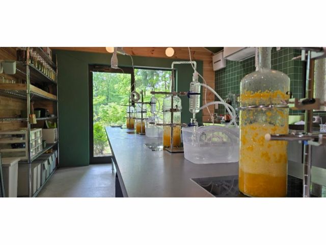 時にはハーブの摘みとりからのハーブの芳香蒸留。