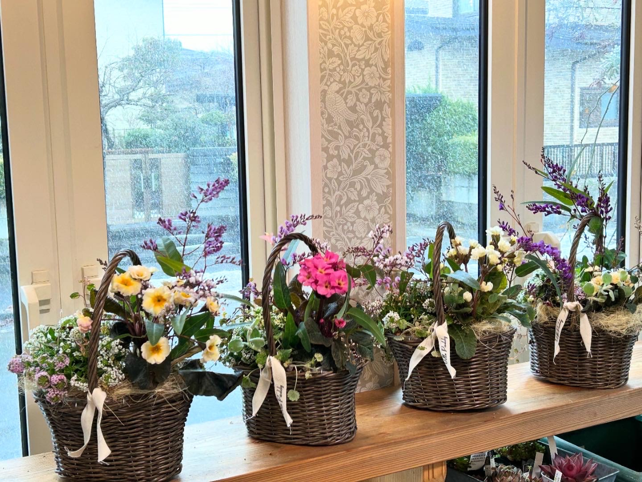 季節ごとの草花を使用し、バスケットや器に自由にアレンジ!