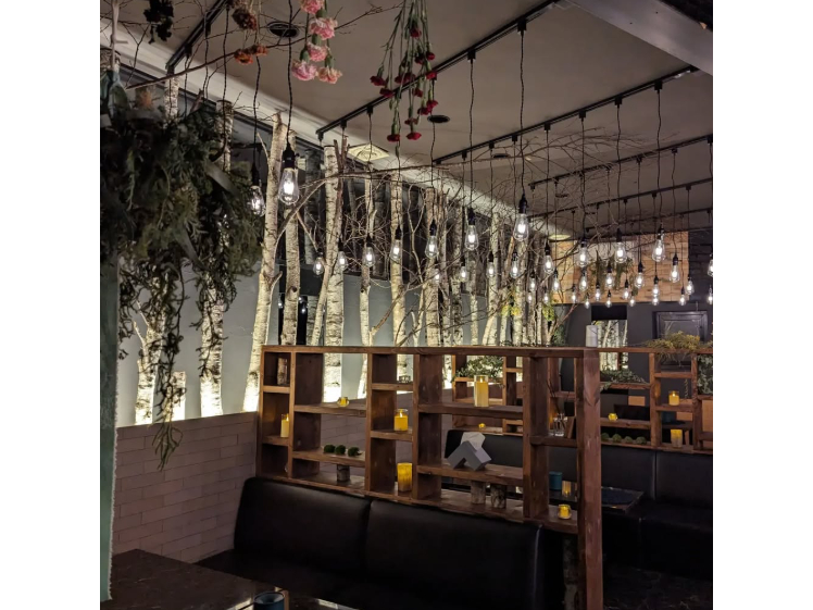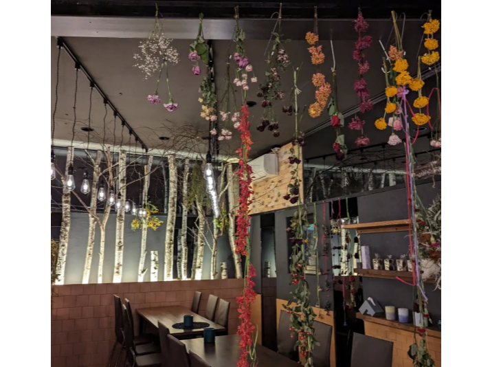 紫の灯りがほんのり揺れる「森の中に迷い込んだような非日常空間」の店内で