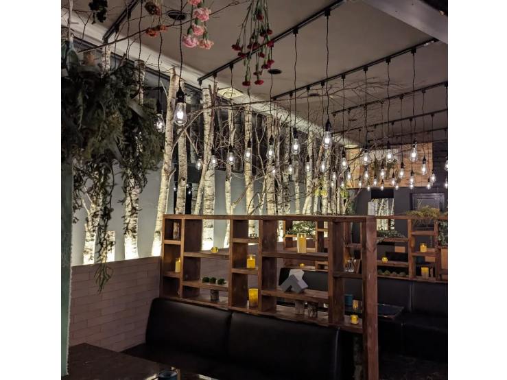 紫の灯りがほんのり揺れる「森の中に迷い込んだような非日常空間」の店内で